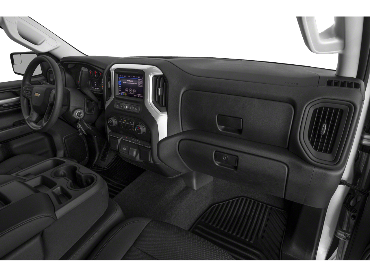 or-Keyed Carpeting Floor Covering, Compass, Deep-Tinted Glass, Electronic Cruise Control, Front Rubberized Vinyl Floor Mats, Manual Tilt Wheel Steering Column, Power Door Locks, Power Front Windows w/Driver Express Up/Down, Power Front Windows w/Passenger Express Down, Power Rear Windows w/Express Down, Rear 60/40 Folding Bench Seat (Folds Up), Rear Rubberized-Vinyl Floor Mats, Remote Keyless Entry, and Standard Tailgate), Safety Confidence Package (4.2 Diagonal Color Display Driver Info Center, Automatic Emergency Braking, Forward Collision Alert, Front Pedestrian Braking, and Steering Wheel Audio Controls), Trailering Package (Hitch Guidance), 10-Way Power Driver Seat w/Lumbar, 120-Volt Bed Mounted Power Outlet, 120-Volt Instrument Panel Power Outlet, 3.42 Rear Axle Ratio, 4-Wheel Disc Brakes, 40/20/40 Front Split Bench Seat, 6 Speakers, 6-Speaker Audio System, ABS brakes, Air Conditioning, Alloy wheels, AM/FM radio: SiriusXM, Apple CarPlay/Android Auto, Brake assist, Bumpers: body-color, Cloth Seat Trim, Delay-off headlights, Driver door bin, Driver vanity mirror, Dual front impact airbags, Dual front side impact airbags, Electronic Stability Control, Front anti-roll bar, Front Black Bowtie Emblem (LPO), Front Center Armrest w/Storage, Front reading lights, Front wheel independent suspension, Fully automatic headlights, Heated door mirrors, Heavy Duty Suspension, Illuminated entry, Low tire pressure warning, Multi-Flex Tailgate, Occupant sensing airbag, Outside temperature display, Overhead airbag, Overhead console, Panic alarm, Passenger door bin, Passenger vanity mirror, Power door mirrors, Pow