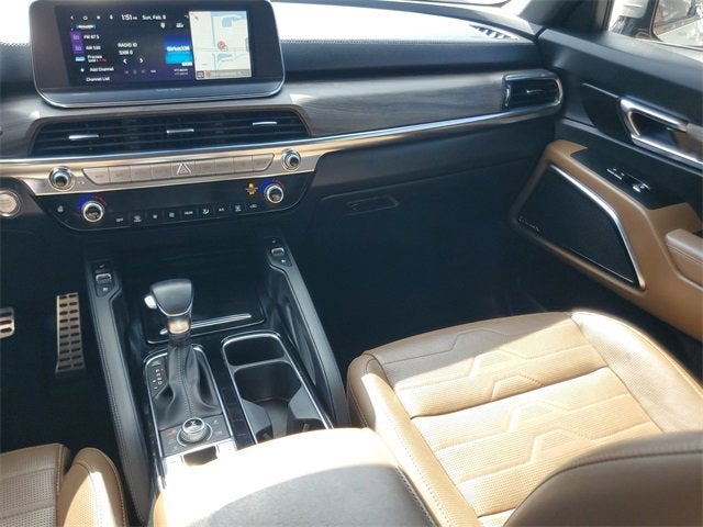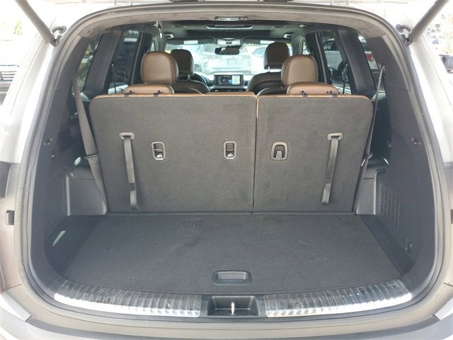 play, Heated & Ventilated 2nd Row Seats, Premium Cloth Headliner & Pillar Trim, Premium Nappa Leather Seat Trim, and Rain-Sensing Front Windshield Wipers), 10 Speakers, 3.648 Axle Ratio, 3rd row seats: split-bench, 4-Wheel Disc Brakes, ABS brakes, Air Conditioning, Alloy wheels, AM/FM radio: SiriusXM, Apple CarPlay & Android Auto, Auto High-beam Headlights, Auto-dimming Rear-View mirror, Automatic temperature control, Brake assist, Bumpers: body-color, Cargo Seatback Up Mat, Carpeted Floor Mats, Compass, Delay-off headlights, Driver door bin, Driver vanity mirror, Dual front impact airbags, Dual front side impact airbags, Electronic Stability Control, Emergency communication system: 911 Connect, Four wheel independent suspension, Front anti-roll bar, Front Bucket Seats, Front Center Armrest, Front dual zone A/C, Front fog lights, Front reading lights, Fully automatic headlights, Garage door transmitter: HomeLink, harman/kardon® Speakers, Heated & Ventilated Front Bucket Seats, Heated door mirrors, Heated front seats, Heated steering wheel, Hybrid Cargo Net, Illuminated entry, Knee airbag, Leather Seat Trim, Leather Shift Knob, Leather steering wheel, Low tire pressure warning, Memory seat, Navigation System, Occupant sensing airbag, Outside temperature display, Overhead airbag, Overhead console, Panic alarm, Passenger door bin, Passenger vanity mirror, Power door mirrors, Power driver seat, Power Liftgate, Power moonroof, Power passenger seat, Power steering, Power windows, Radio data system, Radio: AM/FM harman/kardon Audio System, Rear air conditioning, Rear anti-roll bar, Rear audio controls, Rear reading lights, Rear window defroster, Rear window wiper, Reclining 3rd row seat, Remote keyless entry, Roof rack: rails only, Security system, Smart Key w/ Push Button and Remote Start, Speed control, Speed-sensing steering, Split folding rear seat, Spoiler, Steering wheel moun