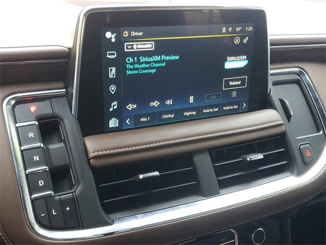Bench, Bose 10-Speaker Surround w/CenterPoint, Bright Front & Rear Door Sill Plates, Chrome Door Handles w/Body-Color Strip, Color-Keyed Carpeting Floor Covering, Driver & Front Outboard Passenger Airbags, Dual Exhaust System, Enhanced Automatic Emergency Braking, Enhanced Driver Information Center, Floor Console, Hands-Free Rear Power Programmable Liftgate, HD Surround Vision, Heated & Ventilated Driver & Front Passenger Seats, Heated 2nd Row Outboard Seats, Heated Driver & Front Passenger Seats, Heated Steering Wheel, Hill Descent Control, Infotainment Display, Inside Rearview Auto-Dimming Rear Camera Mirror, Lane Change Alert w/Side Blind Zone Alert, LED Daytime Running Lamps, Memory Settings, Outside Heated Power-Adjustable Mirrors, Power Release 2nd Row Bucket Seats, Power Tilt & Telescopic Steering Column, Rear Camera Mirror Washer, Rear Cross Traffic Alert, Rear Pedestrian Alert, Remote Start, Safety Alert Seat, SiriusXM Radio w/360L, Universal Home Remote, Wireless Charging, and Wrapped Steering Wheel), 1.5 kW Heater/Defrost Air System, 10 Speakers, 250 Amps Alternator, 3.23 Rear Axle Ratio, 3rd row seats: split-bench, 4-Wheel Disc Brakes, 850 Cold-Cranking Amps Battery, ABS brakes, Adaptive Cruise Control, Adaptive suspension, Air Conditioning, Alloy wheels, AM/FM radio: SiriusXM with 360L, Apple CarPlay/Android Auto, Auto High-beam Headlights, Auto-dimming door mirrors, Auto-dimming Rear-View mirror, Auto-leveling suspension, Automatic temperature control, Brake assist, Bumpers: body-color, Compass, Delay-off headlights, Diesel B20 Fuel, Driver door bin, Driver vanity mirror, Dual front impact airbags, Dual front side impact airbags, Dual-Pane Power Panoramic Sunroof, Electronic Stabilit