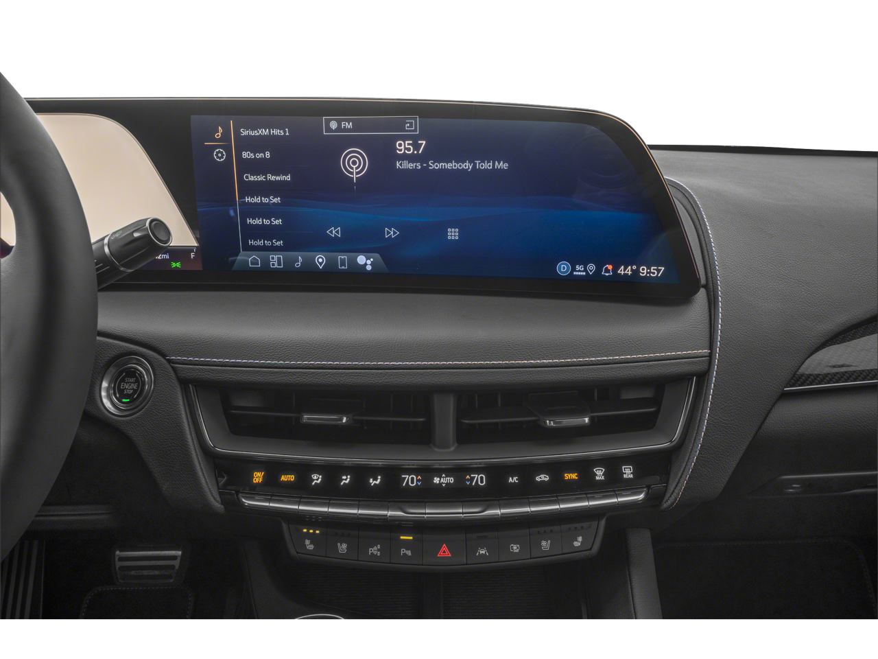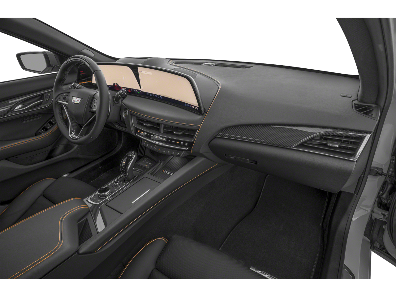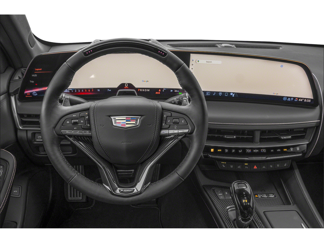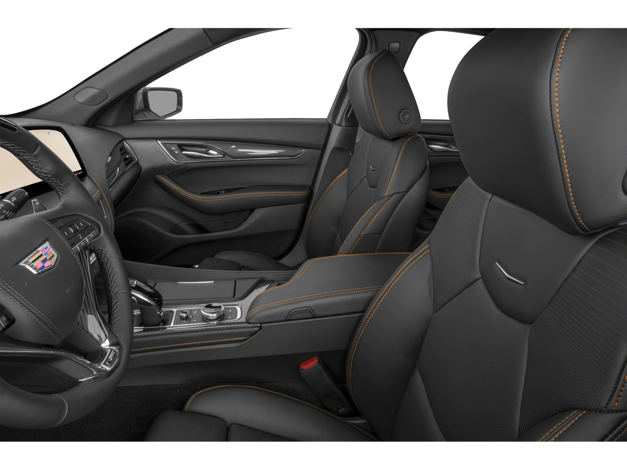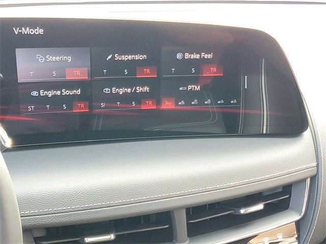 Electronic Precision Shift, Electronic Stability Control, Emergency communication system: OnStar and Cadillac connected services capable, Enhanced Automatic Emergency Braking, Enhanced Automatic Parking Assist, Exterior Parking Camera Rear, Four wheel independent suspension, Front 2-Way Adjustable Head Restraints, Front anti-roll bar, Front Bucket Seats, Front Center Armrest, Front dual zone A/C, Front Passenger 4-Way Power Lumbar Seat Adjuster, Front Passenger Power Lumbar Massage Seat, Front Pedestrian and Bicyclist Braking, Front reading lights, Fully automatic headlights, Garage door transmitter, Gloss Black Nameplates, Heads-Up Display, Heated door mirrors, Heated Driver and Front Passenger Seats, Heated front seats, Heated steering wheel, High Performance Front Bucket Seats, Illuminated entry, Intersection Automatic Emergency Braking, Knee airbag, Leather Seating Surfaces with Mini-Perforated Inserts, Leather steering wheel, Low tire pressure warning, Memory seat, Navigation system: Google Automotive Services Capable, Occupant sensing airbag, Outside temperature display, Overhead airbag, Overhead console, Panic alarm, Passenger door bin, Passenger vanity mirror, Performance Front Bucket Seats, Power door mirrors, Power driver seat, Power passenger seat, Power steering, Power windows, Radio data system, Radio: Goo